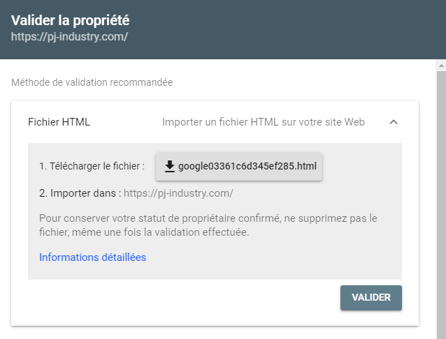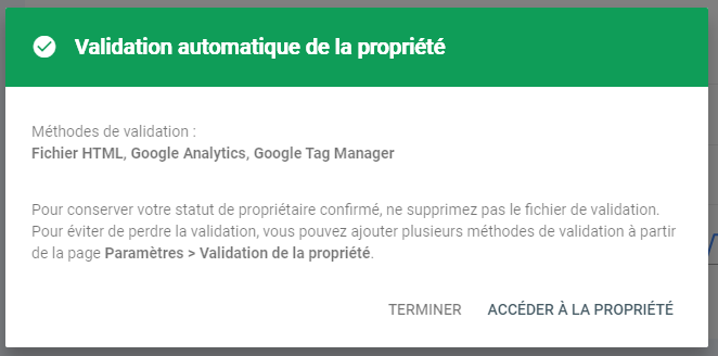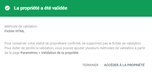Une fois fait, retourner sur la propriété pour « VALIDER »