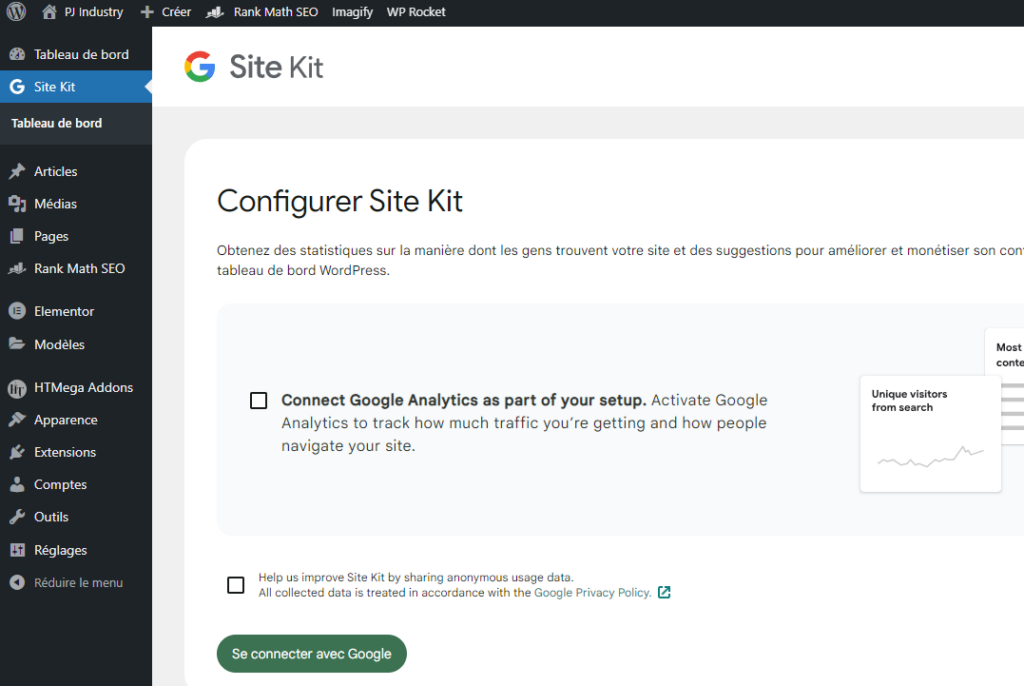 Télécharger l’extension Google Site Kit (si pas déjà fait)