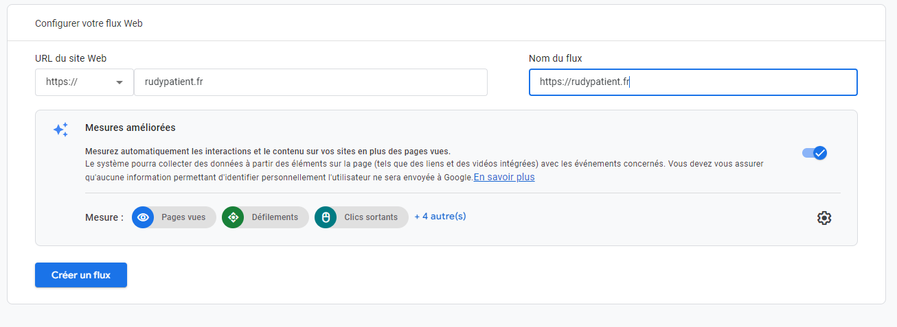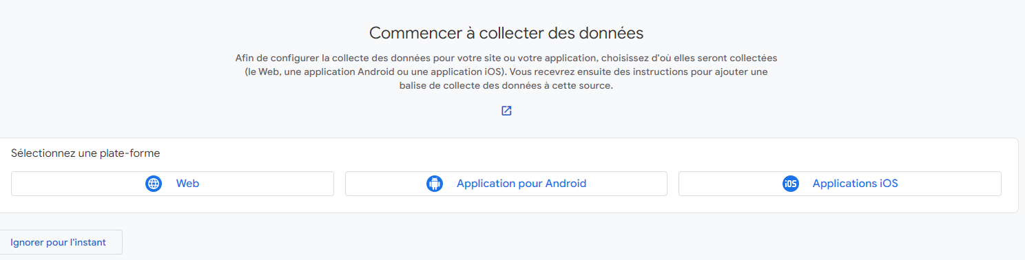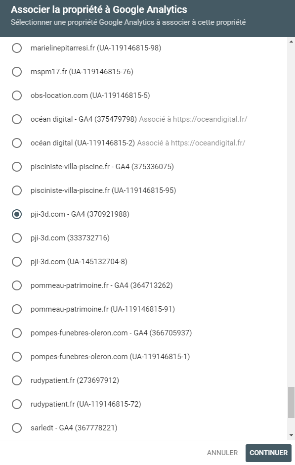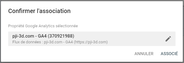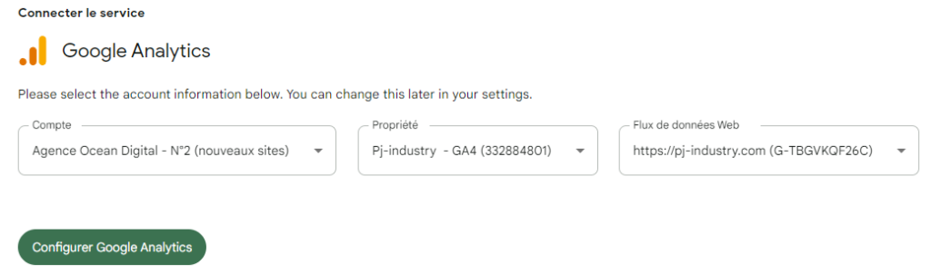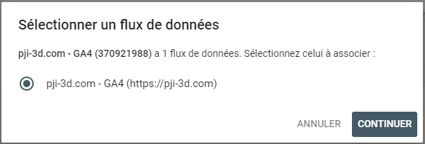 Sélectionner la bonne propriété Analytics (vérifier qu’elle soit bien en GA4)