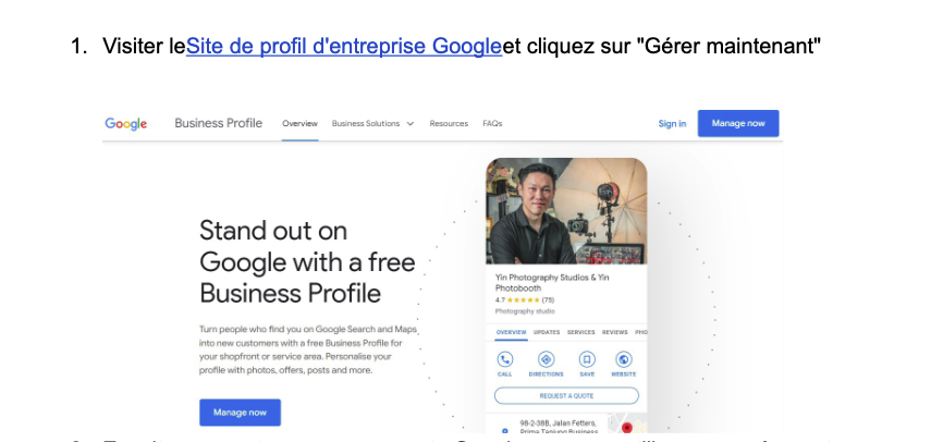 Prérequis ou exigences : Vous devez avoir un compte Google Business Profile déjà configuré pour cette entreprise.