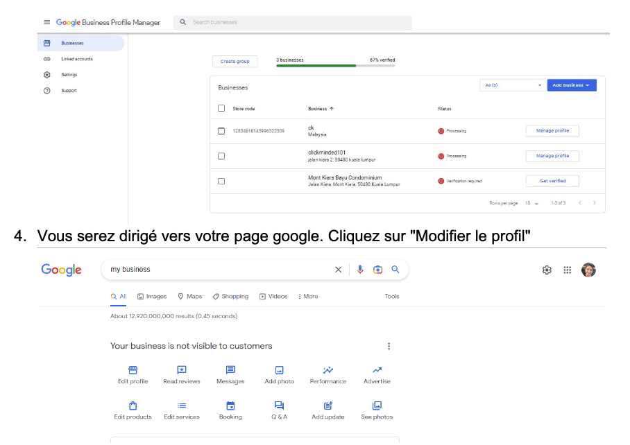 Où cela se fait : Dans le profil d’entreprise Google.