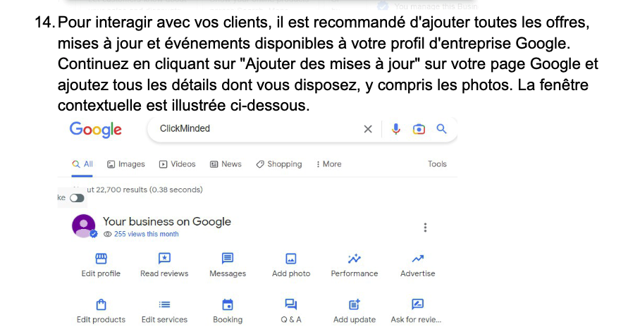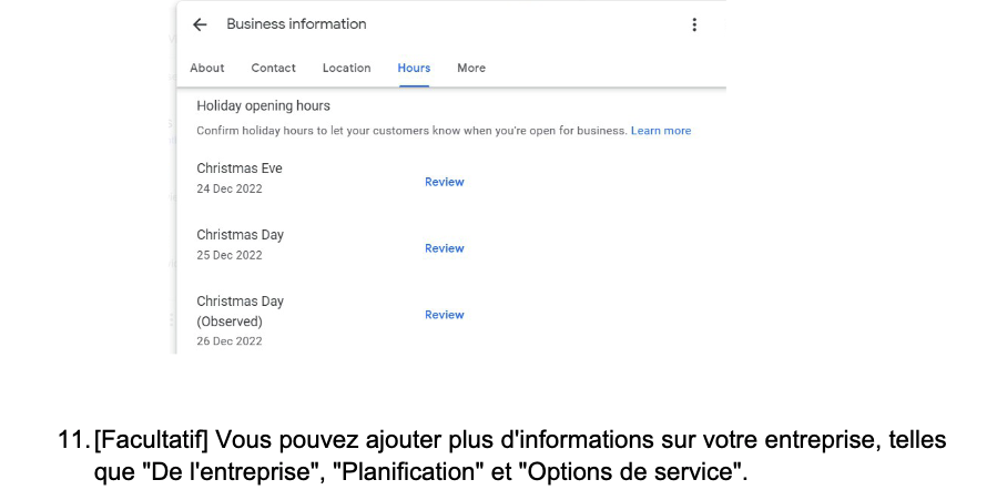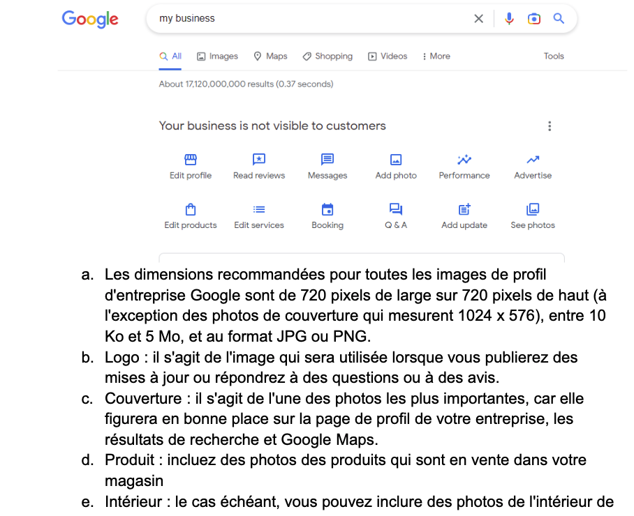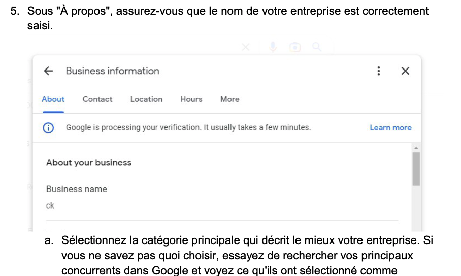 Résultat idéal : Votre fiche de profil d’entreprise Google contient toutes les informations