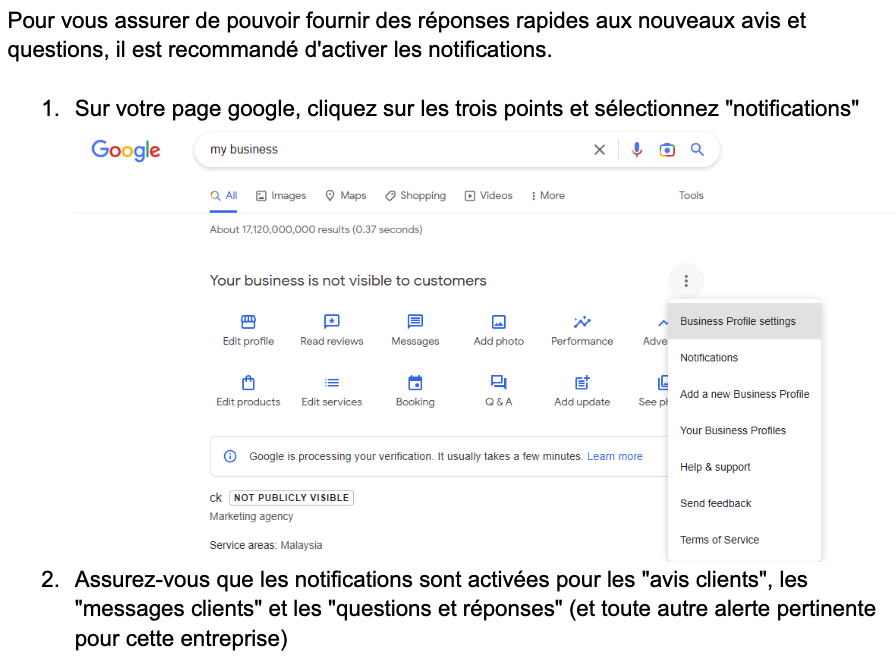 Étape 4 : Activer les notifications de profil d'entreprise Google